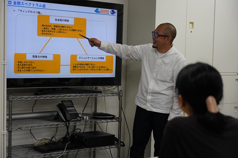 障害特性の理解や支援方法、危険な行動の予防や対応の仕方を学びます。